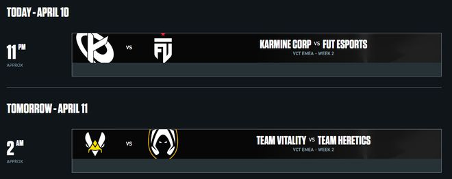 4月10日VCTEMEA赛区比赛预告:KCvs FUT;VITvs TH