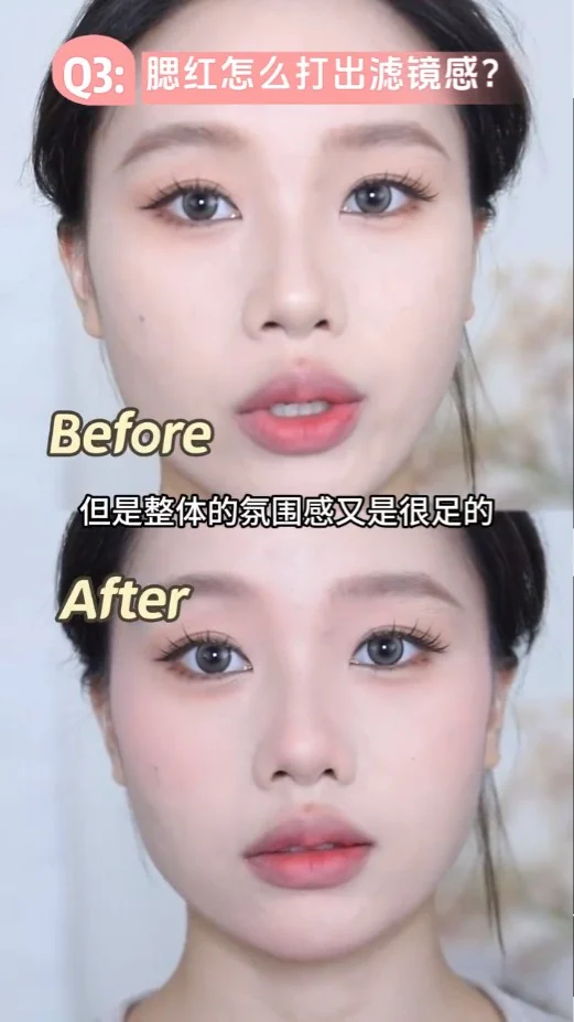这样打出来的腮红不会有明显的一坨,而是很自然地散布在面部的各个角落,氛围感这不就出来啦~