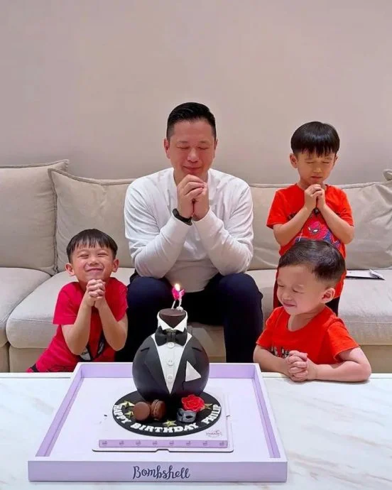 李乘德发文表示,“又大了一岁,今年由儿子们帮我许愿。当我问他们许了什么愿时,一个说永远可以跟爸爸妈妈睡,一个说天天吃芒果,最小的不知道许愿是什么。”至于寿星的生日愿望则是希望家人都能够身体健康,继续赚大钱。不少网民都表示他们一家五口非常温馨,幸福满溢。